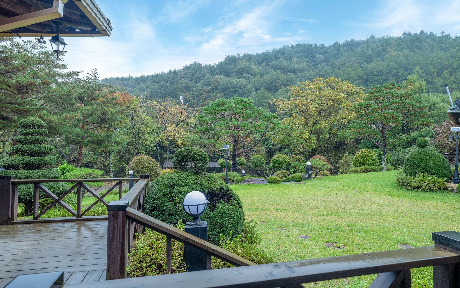 초록빛 잔디가 부드럽게 펼쳐진 정원은 자연의 결을 따라 정성껏 다듬어진 고요한 공간입니다.