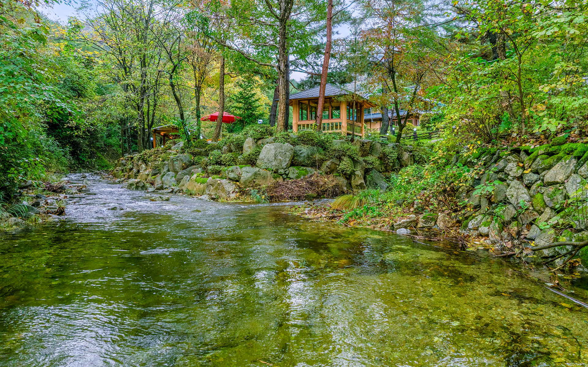 계곡 옆에 자리해 자연의 소리를 배경으로